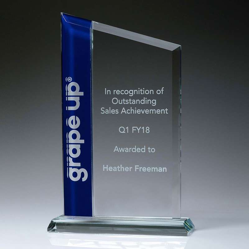 Different design of glass awards, the Aqua Glass features unique texturing, and a design elevated by the blue base element. The series is available in 3 impressive sizes, in a presentation gift box and the distinctive shape and design of these awards may complement your field of activity or industry.