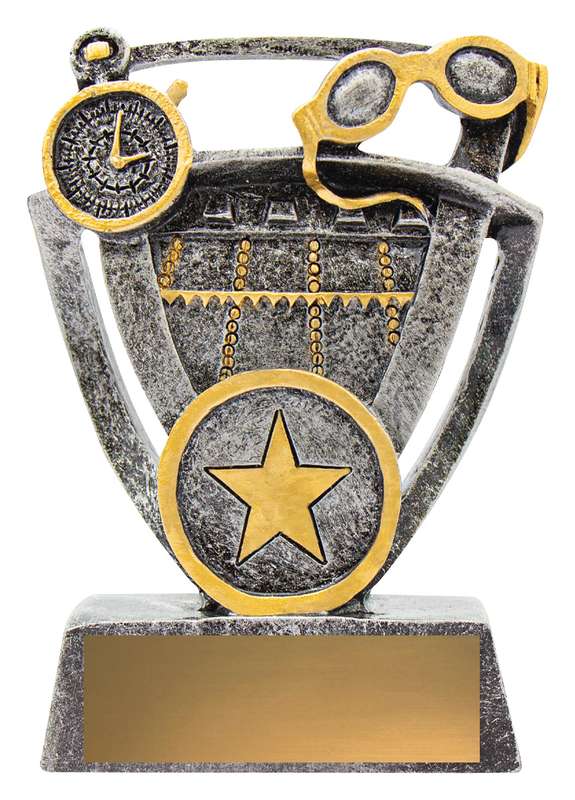 Excellent pair of badminton trophies well suited for larger club orders feature racquet & shuttlecock design and eye-catching multi-star elements. Great position for your club insert.