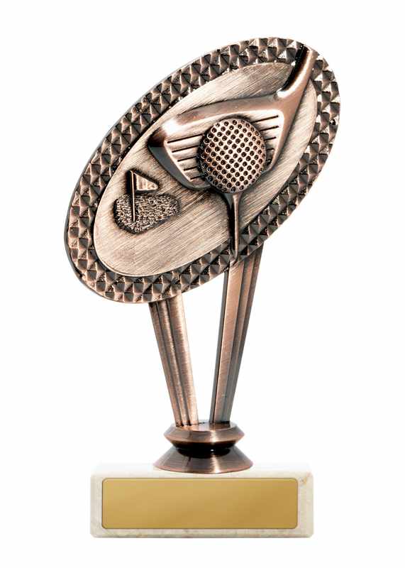 The ‘Elite’ design of Golf trophies provides male and female versions – golfer captured perfectly mid-swing and finished in classic antique gold. Excellent idea to recognise the achievements of your top performer. Option for customisation.