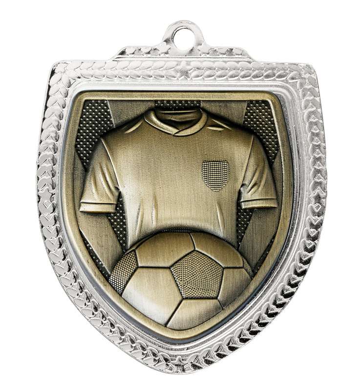 This popular Football medal features the classic ball and net combination plus the option of including your 25mm club logo insert. Available in gold and silver and engraving space on the back of the medal. Ribbons available in all colours and medal boxes to suit.