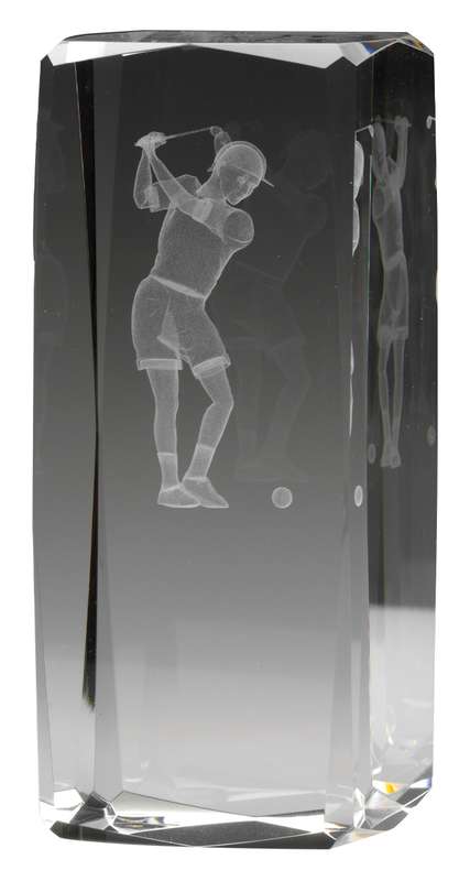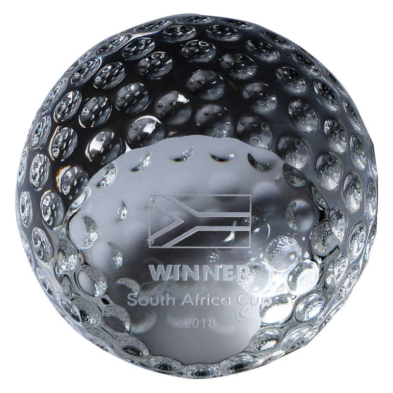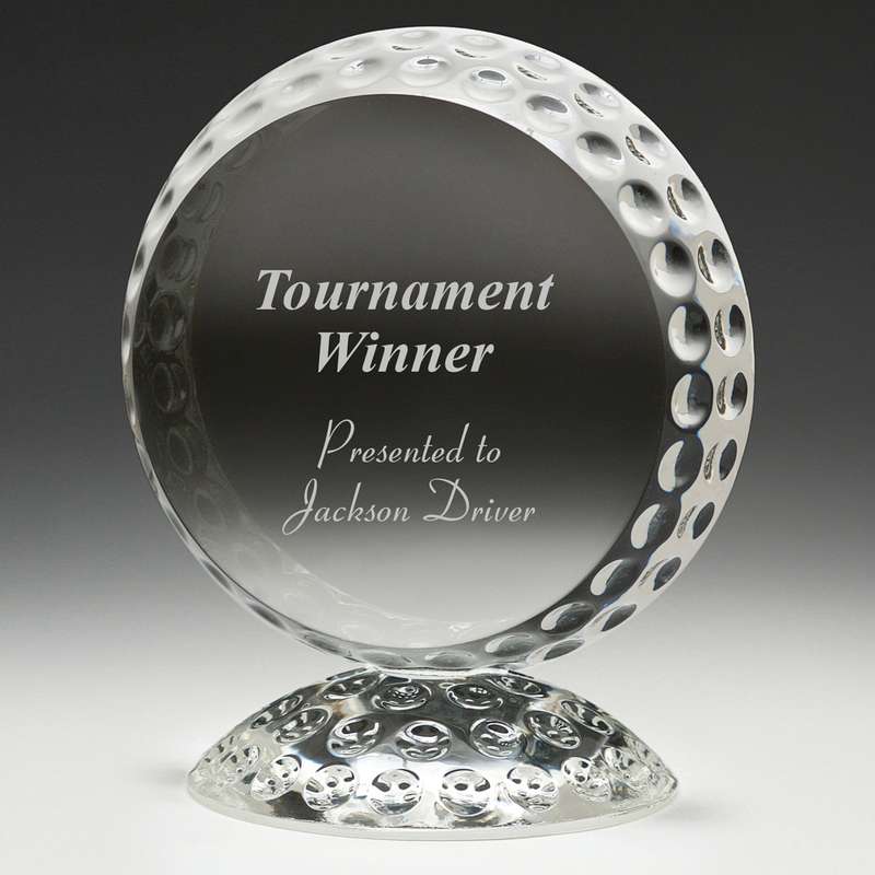 Popular series of prestige crystal awards specially design for golf events and competitions. Crystal design features black base and golf ball decorative detail. Available in 3 sizes and supplied in presentation boxes.