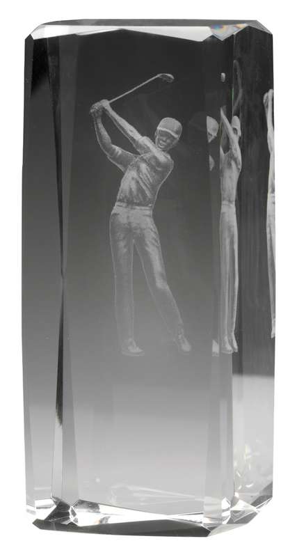 Affordable crystal iceberg award design features a detailed golf ball on tee design. A versatile trophy suitable for a range of golf event awards, with space for your engraving and available in a presentation gift box.