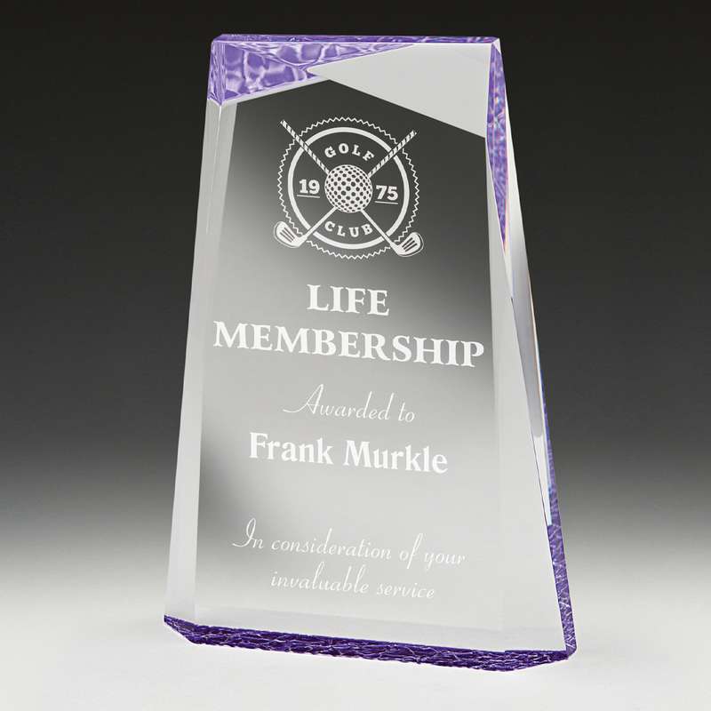 Prism’ Acrylic series offer a distinctive cut design to show off your personalisation requirements. Choose between blue, red or green awards. Supplied in presentation gift box.