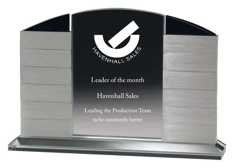 An excellent perpetual award option to record the recurring achievements of your employees and personnel. The Legacy Landmark provides an innovative glass and metal design – 12 metal attachments that can be replenished as needed as the lifetime of the award progresses. You can purchase metal attachments separately. Width of glass provided in the additional information.