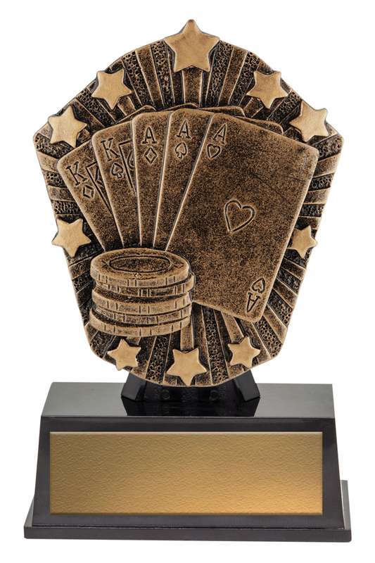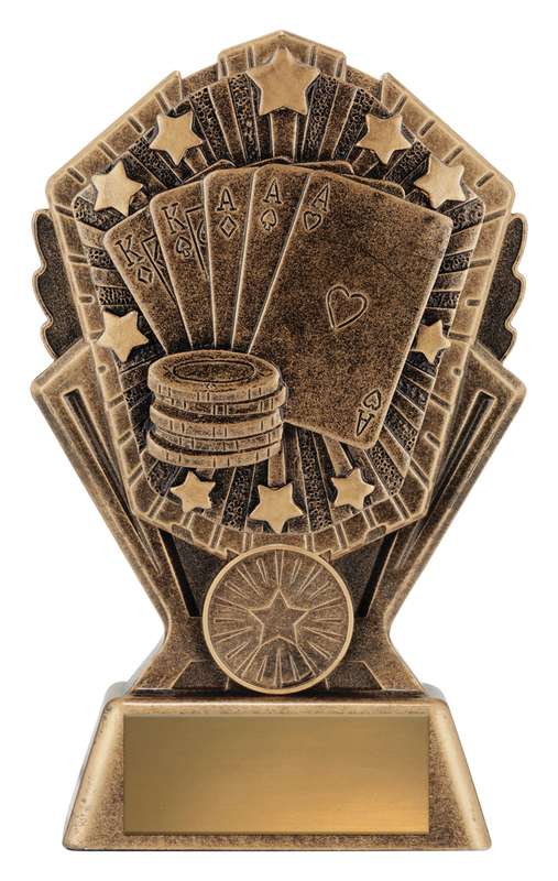 Classic antique gold trophy for cards and poker players. A design that celebrates the central element of the card hand. A generic theme that can work well for various cards and poker game events and presentations.