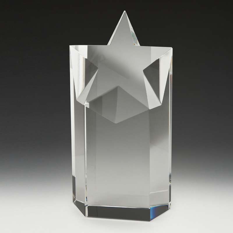 Stellar Star Crystal series is a popular design with a metal star and crystal wedge blocks. Plenty of engraving space and a truly prestige award in 3 sizes and gift box included.